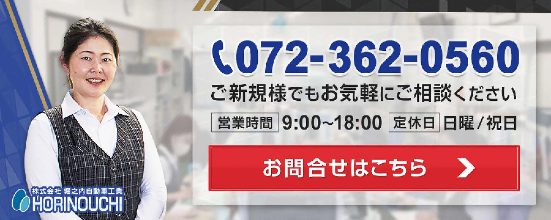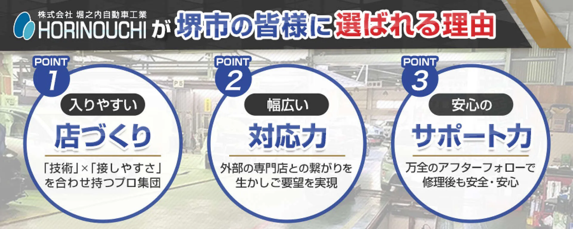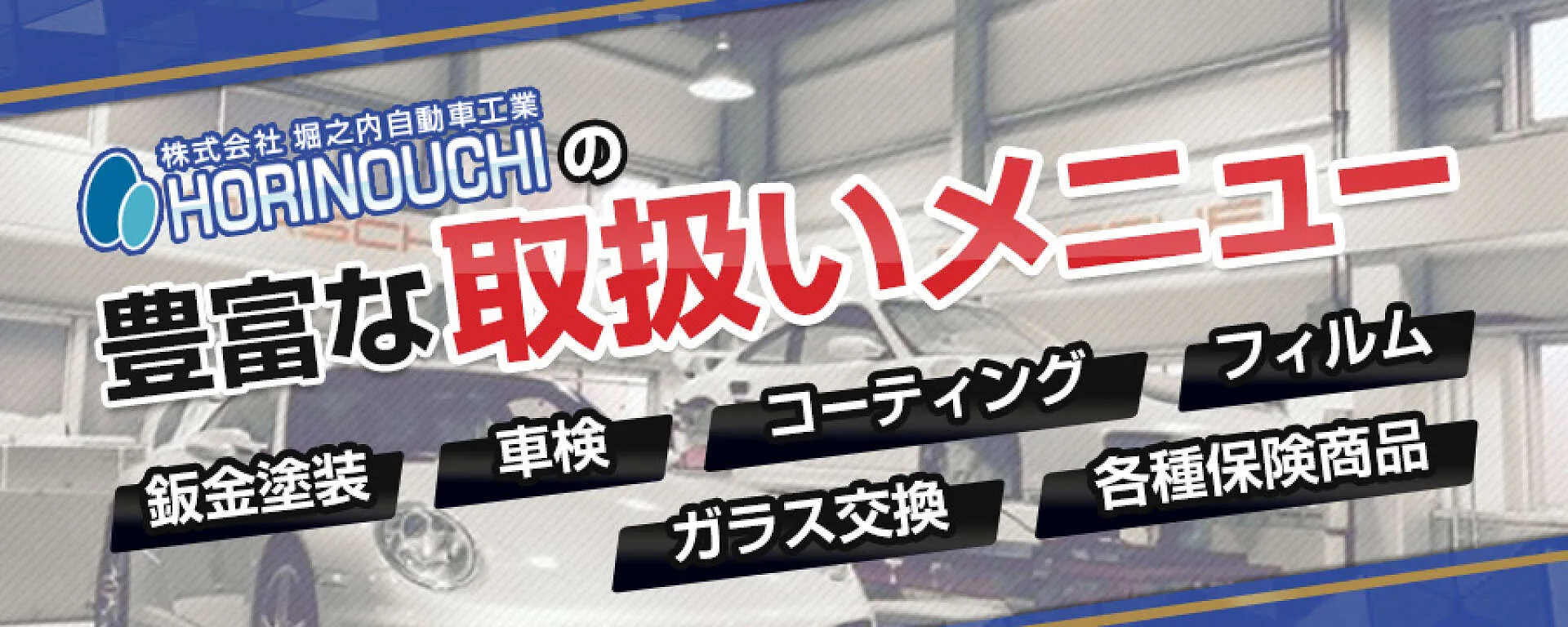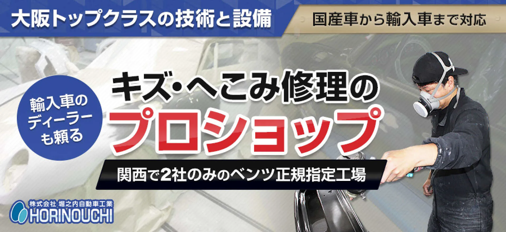 堺市美原区にある堀之内自動車工業では、国産車から輸入車まで幅広い車種のキズ・ヘコミ修理にご対応いたします。鈑金塗装・車検・修理など車のことならご新規さまでもお気軽にご相談ください。