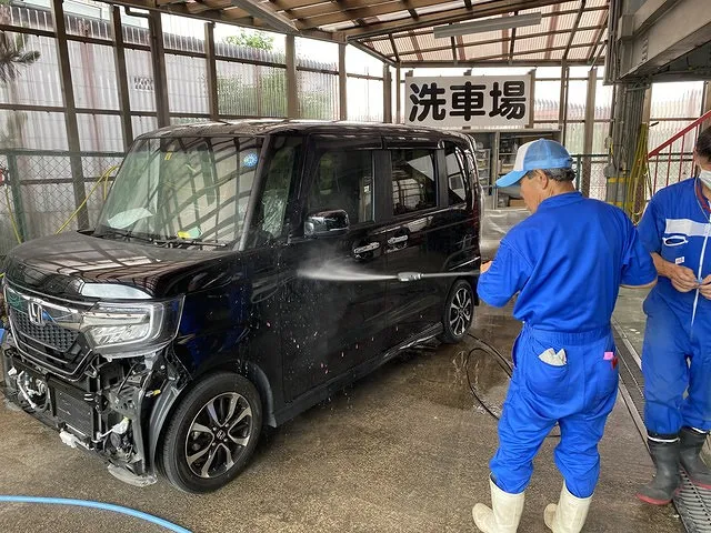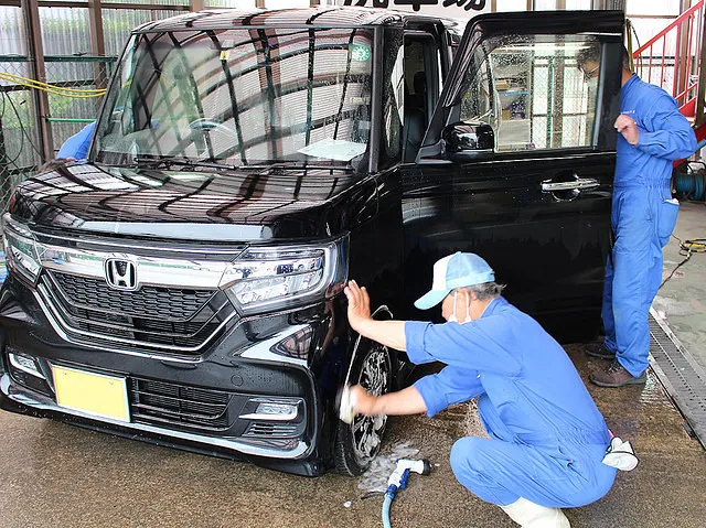 キズやヘコミの修理後、お客様に気持ちよくご乗車いただくために、手洗い洗車と車内清掃を無料で行っています。