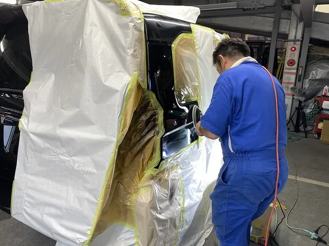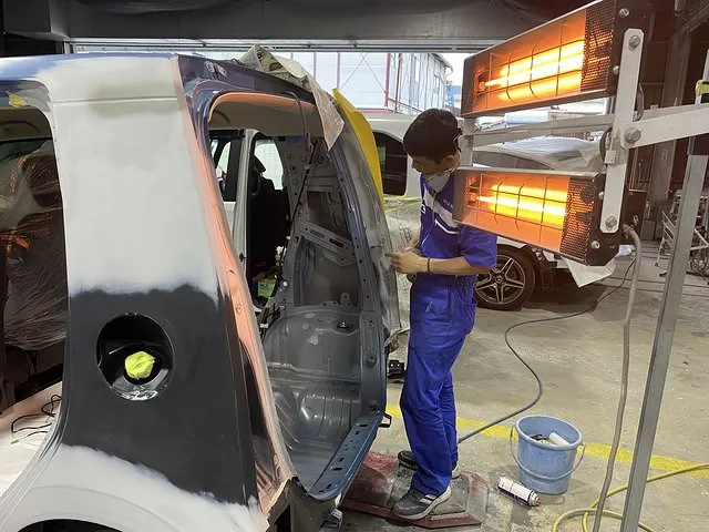 工場に併設した塗装ブースで、お車のカラーにあった色を調色し、塗装します。