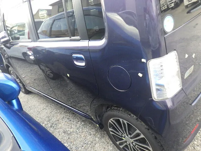 堺市にお住まいのK様よりムーブの左フロントドア、キズ・ヘコミ修理のご依頼いただきました。今回は、スーパーの駐車場から出るときに、横から他の車にぶつけられてできたキズ・ヘコミだそうです。