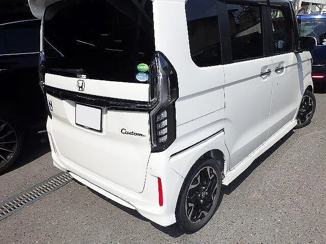 N-BOXの右側面 リアバンパーのキズ・ヘコミ修理が完了しました。お客様に「元通りになってスッキリした!」とご満足いただけました。ありがとうございました。