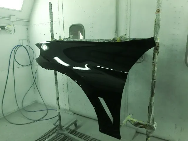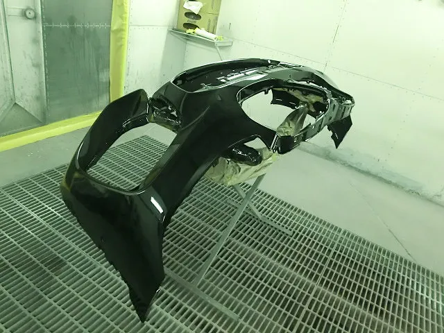 下地処理が終われば、いよいよ塗装ブースで塗装していきます。ここで何度も塗り重ねながら塗装します。塗装して乾燥させて、また塗装して・・と繰り返すことによって元々の色に近づいていくんです。手間と時間はかかりますが、綺麗に塗装することができます。