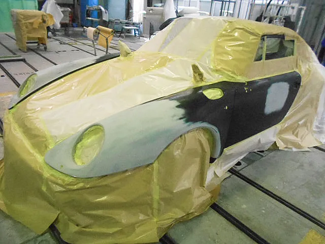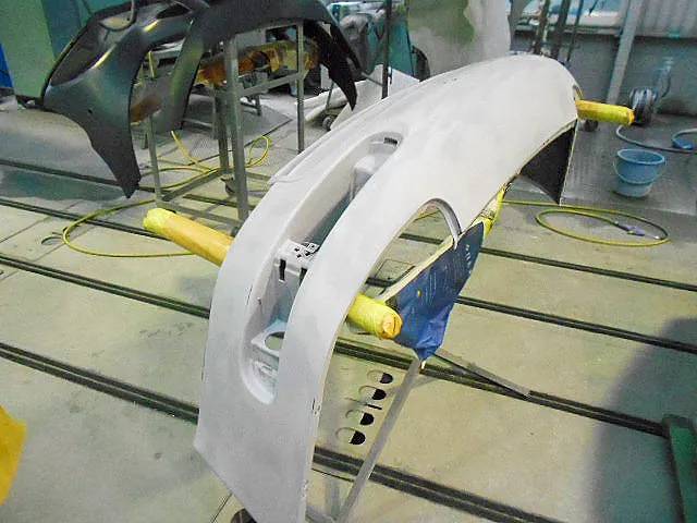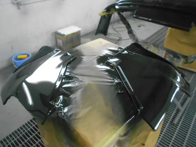 フロントバンパー、その他箇所全てに下地処理をしてから塗装に入ります。