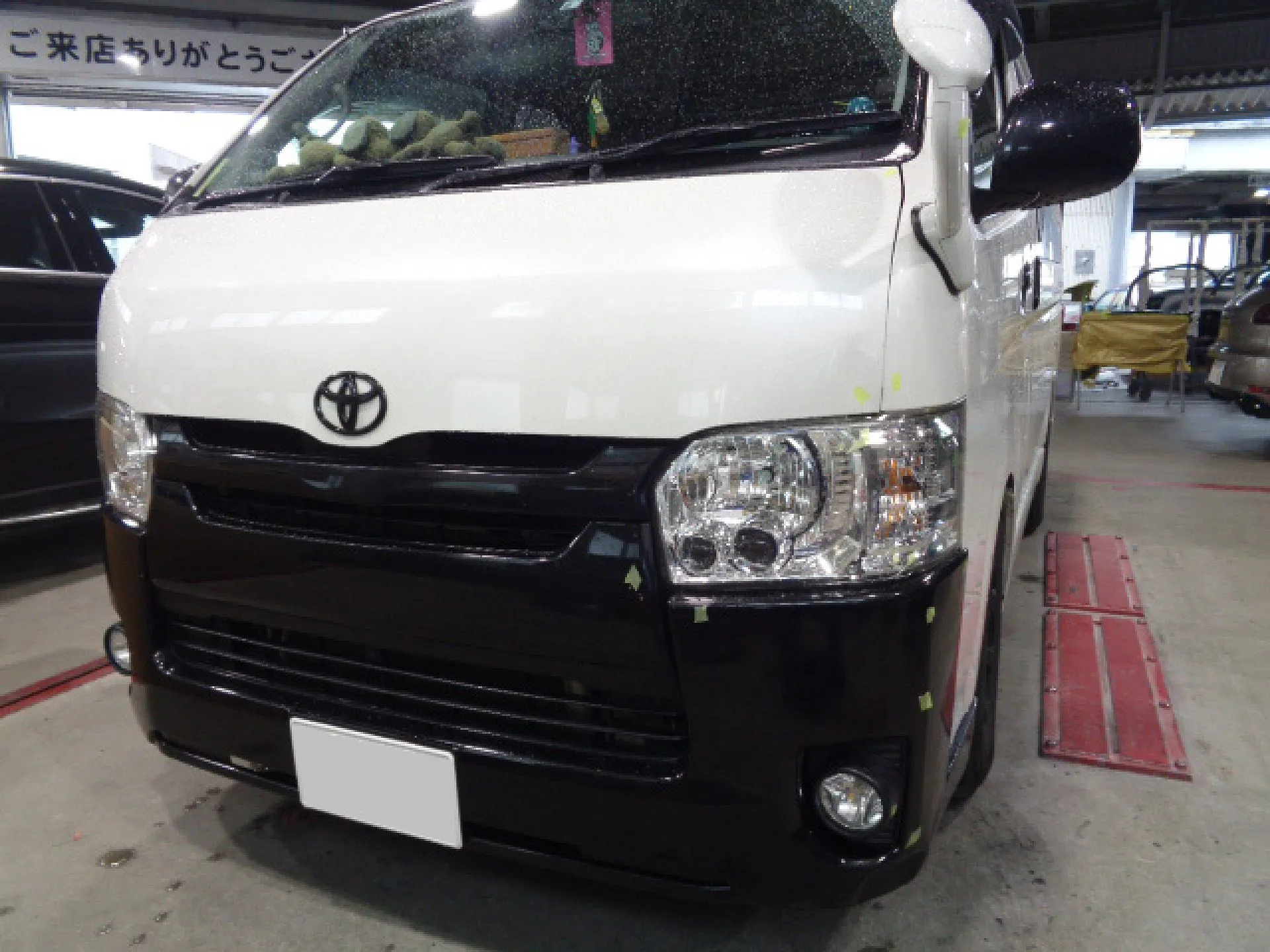 堺市美原区 羽曳野市 鈑金塗装 | ハイエース フロントバンパーのキズ修理 堀之内自動車工業