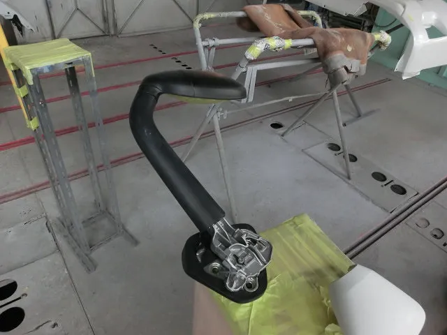 キズがあるのは、主にフロントバンパーですが、他にもフロントフェンダーやミラーカバーにもキズがありました。白い車体のため小さなキズでも目立ってしまいますね。丁寧かつスピーディーに修理していきます。