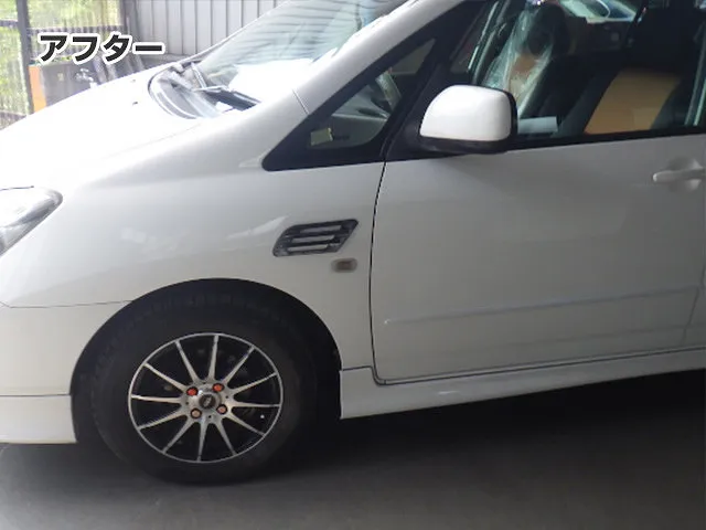 あんなに深いキズがあったとは思えないほどキレイになったんではないでしょうか。元の部分と修理した箇所との色の境目も分かりませんよね。白は白でも色んなトーンがあるので、ほんの少し違うだけでも悪目立ちするんです。でも当社は歴15年以上の塗装のプロが多数在籍しているので、そんな心配はいりません。仕上がりには絶対の自信があるので、安心してお任せいただけます。