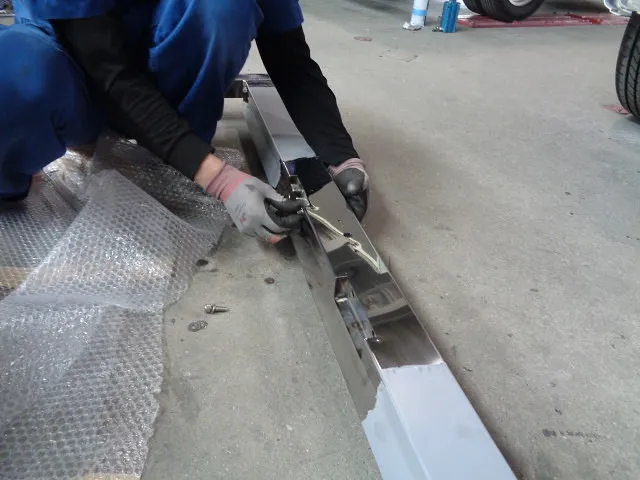 駐車の際に外壁に擦ってしまいキズが付いたとのことでご入庫いただきました。トラックは乗用車よりもハードに働くので、キズ・ヘコミを付いてしまう確率は高いですね。そんな時どこに修理をしてもらおうか悩むと思いますが、当社は乗用車はもちろん、トラック等の特殊車両も対応可能なんです。