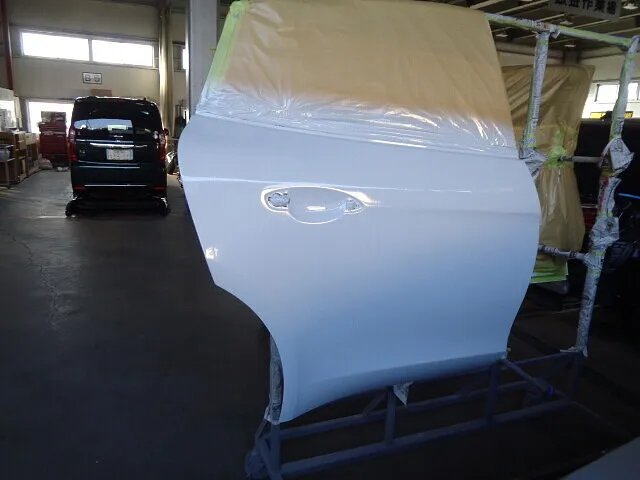 かなり大規模な作業でしたが、無事に完成して良かったです。鈑金塗装で修理することで半分の費用で修理でき、お客様にも大変喜んでいただきました。ご入庫ありがとうございました。