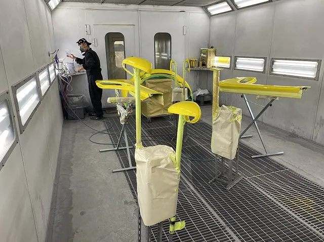 まずは、パーツをばらしてからコーティングをしない部分(ヘッドライト、ウィンドウガラス、ホイール)にはしっかりとマスキングをします。その後、特殊な液剤をスプレーで何度も丁寧に塗り重ねて最終的にはフィルムのようになります。また塗装をしたコーティングなので、境目や難易度の高い細かい部分もキレイに仕上がります。
